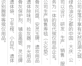 公司秉承“質量為本、我們要做的是唯一、而不是第一”的經(jīng)營服務理念,堅持以誠信為先、服務至上、創(chuàng)新發(fā)展為立業(yè)之本,以鄭重的承諾和完善的服務為信譽保證,不斷專研、開發(fā)、生產(chǎn)出盡善盡美的高科技殯儀產(chǎn)品...
